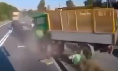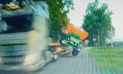 W Gnojniku doszło do czołowego zderzenia samochodu osobowego z ciężarowym. Na filmie z wypadku widać mężczyznę, który jechał na samochodzie ciężarowym zbierającym odpady i po uderzeniu...