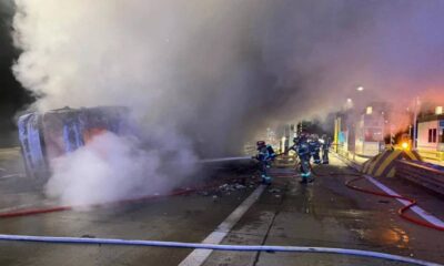 W nocy kierowca ciężarówki uderzył w punkt poboru opłat na autostradzie A2. Samochód stanął w płomieniach. Kierowca zginął Do tego wypadku doszło na autostradzie A2 w...