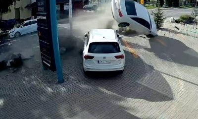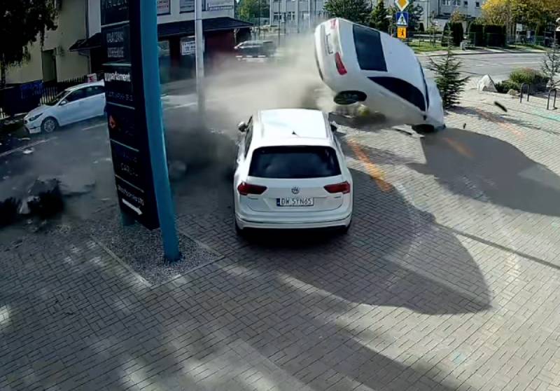 Zatrważająca kolizja zarejestrowana przez kamery restauracji we Wrocławiu. Kierowca wypadł z jezdni. Samochód przeleciał nad chodnikiem. Chwilę wcześniej szli tam piesi. Mogło dojść do tragedii Do...