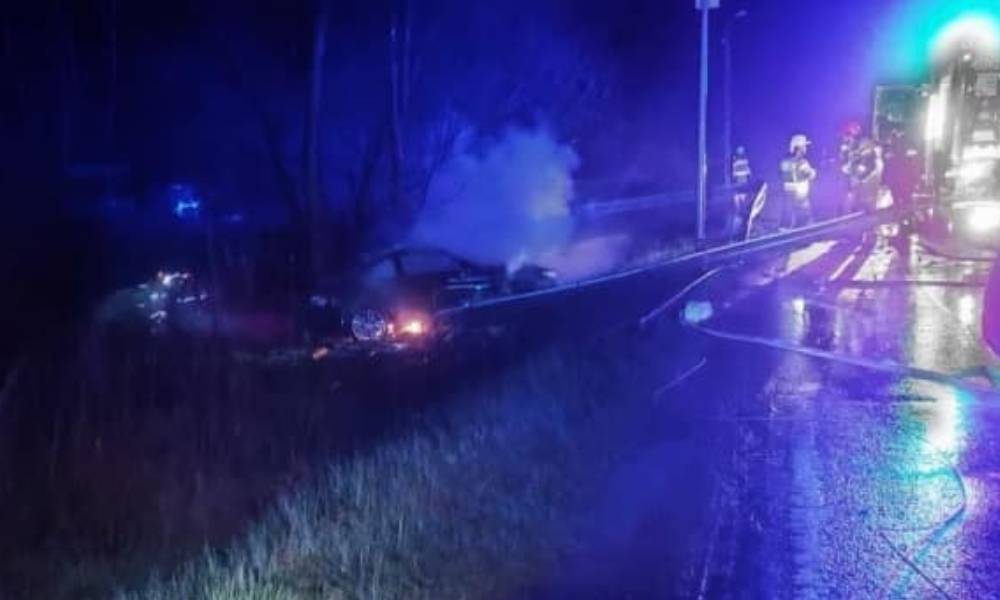 Dziś w nocy młody kierowca uderzył BMW w betonowy słup w Mszanie Górnej. Dwaj pasażerowie na tylnym siedzeniu spłonęli we wraku Do wypadku doszło około 2.30...