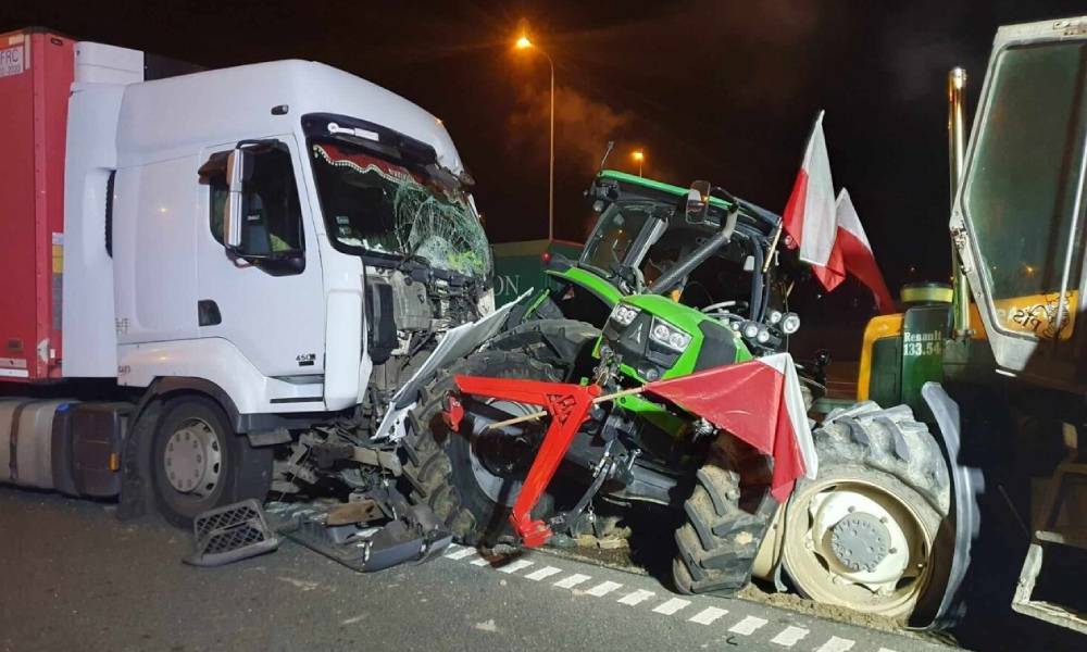 Na blokadę ustawioną na drodze szybkiego ruchu koło Żnina najechał kierowca ciężarówki. Rolnik stracił maszynę. Nie dostanie odszkodowania z OC. Ale w sieci uruchomiono zbiórkę dla...