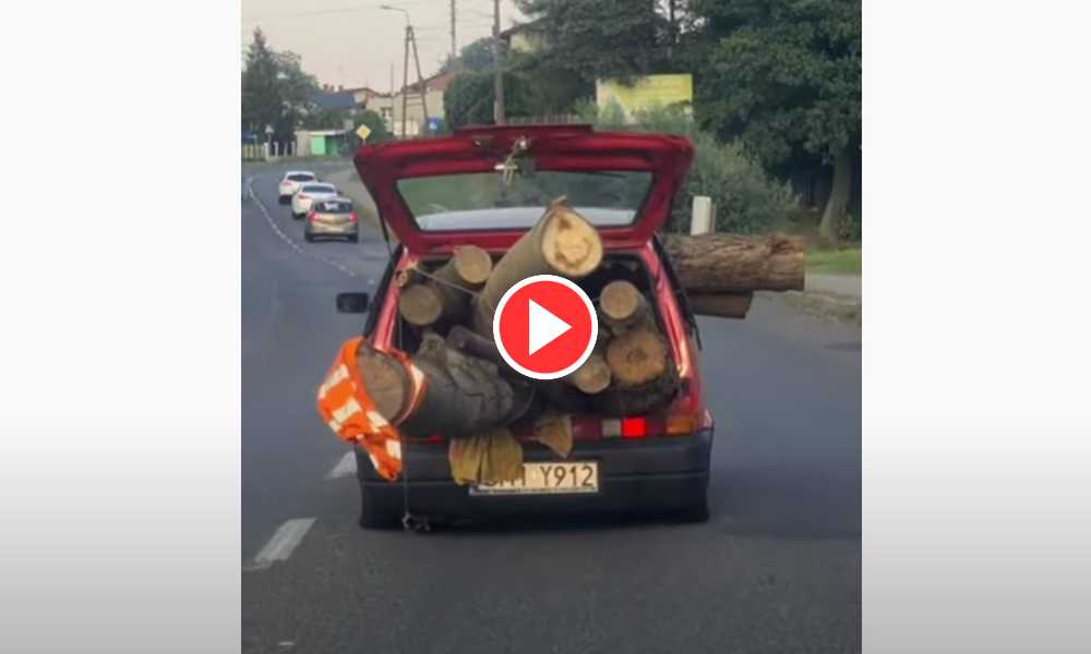 Szokujące nagranie z polskich dróg. Kierowca fiata cinquecento jechał autem zapełnionym drewnianymi balami. Internauci kpią: „tyle drzewa, że warte więcej niż auto” Jeden z kierowców zarejestrował...