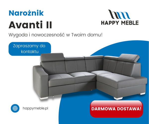 Narożnik może być meblem, który ozdobi salon, ale i praktycznym – na którym można wygodnie spać. Taki jest narożnik Avantii II firmy Happy Meble Narożnik Avanti...