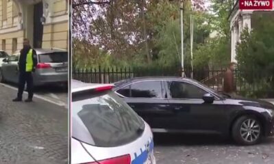Przechodnie poprosili policjantów o sprawdzenie przepuszczalności światła w szybach limuzyny, którą z dzisiejszego wiecu miał zostać odwieziony prezes PiS. Nie spełniały norm. Policja zatrzymała dowód rejestracyjny...