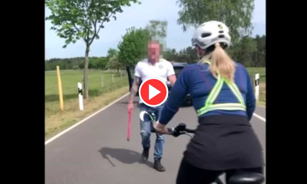 Kierowca BMW groził rowerzyście pałką. Scena rozegrała się tuż za polską granicą, po niemieckiej stronie. A to oznacza dla pana z pałką naprawdę poważne kłopoty Rowerzysta...