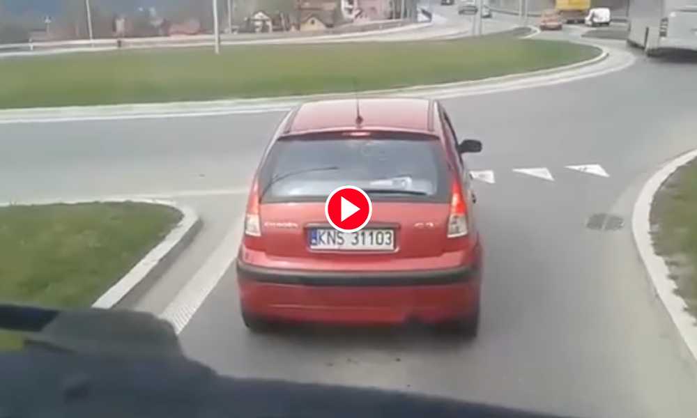 Ten manewr na rondzie wykonany przez kierowcę citroena wzbudził nie tylko zdumienie nagrywających go kierowców za nim, ale też wielu ludzi, którzy oglądają to nagranie w...