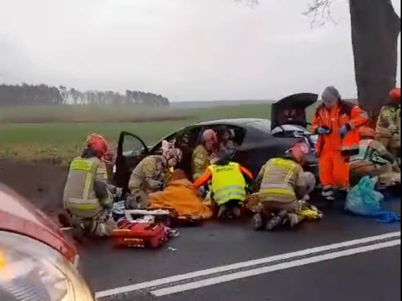 Kierowca rozbił się o drzewo w okolicach Świebodzina. W osobowym aucie jechało 9 ludzi, w tym sześcioro dzieci. Do sieci trafiło nagranie z akcji ratunkowej W...