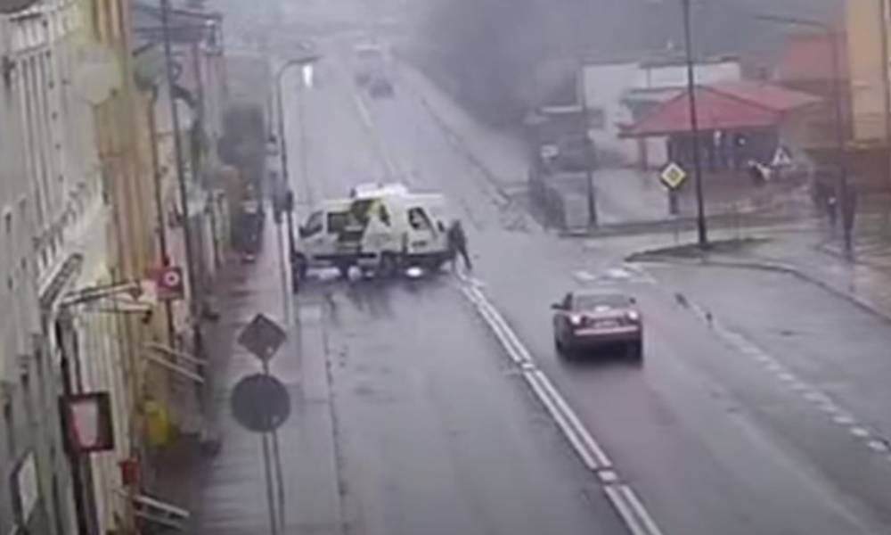 Starszy kierowca w Cieszynie zjechał ze swojego pasa. Uderzył w inne auto, które dachowało. Nagranie z monitoringu pokazało, jak doszło do tego zderzenia Ten wypadek wydarzył...