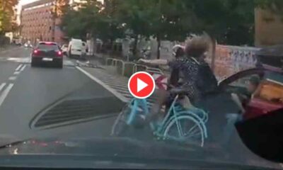 Kierowca wysiadający z auta zablokował drogę rowerzyście. Poważne uderzenie Nagranie z krakowskiej ulicy dowodzi tego, że jeśli rowerzysta za bardzo weźmie do serca obowiązek jazdy możliwie...