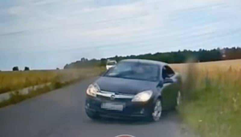 Droga między polami, wąsko. I znalazł się kierowca, który koniecznie musiał wyprzedzić. Ratując się przed zderzeniem czołowym nieomal nie doprowadził do innego To nagranie zostało zarejestrowane...