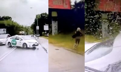 W Szczecinie kierowca taksówek na aplikacje spowodował kolizję i wypadł z drogi na chodnik. Na filmie, który trafił do sieci widać, jak piesza uratowała swoje życie...