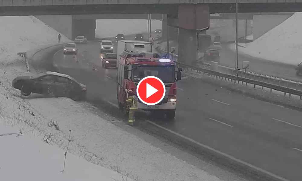 Kierowca wpadł w poślizg na drodze szybkiego ruchu. Nie spodziewał się, że w zacienionym przez ekran akustycznym miejscu jezdnia będzie śliska Ten film jest dobrą nauką...
