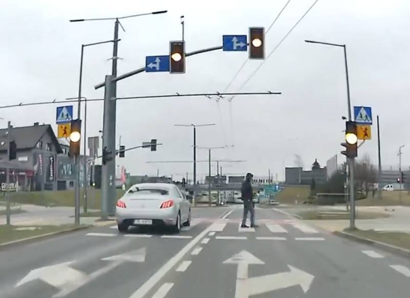 Kierowca wrzucił nagranie na X, żeby pokazać, jak „ślepi” są piesi. Tymczasem na nagraniu widać, jak sam łamie prawo – nie rozumie, co oznacza żółte światło...