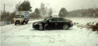 nawet przy wypychaniu samochodu z zaspy nie wolno stracić czujności. Bo może się to skończyć tak