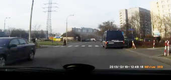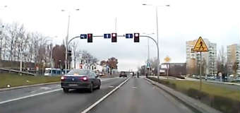 Przejazd na czerwonym i to z pasa do skrętu w lewo. Mało brakowało, a pędzący przez miasto samochód rozjechałby pieszych na pasach
