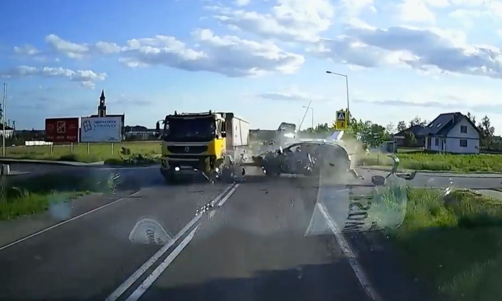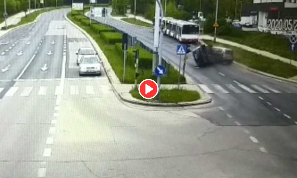 Mężczyzna bez prawa jazdy spowodował wypadek w Adamówce (Podkarpacie), w którym zderzyły się aż cztery samochody. Policja udostępniła film. Wjechał na skrzyżowanie prosto w inne samochody...