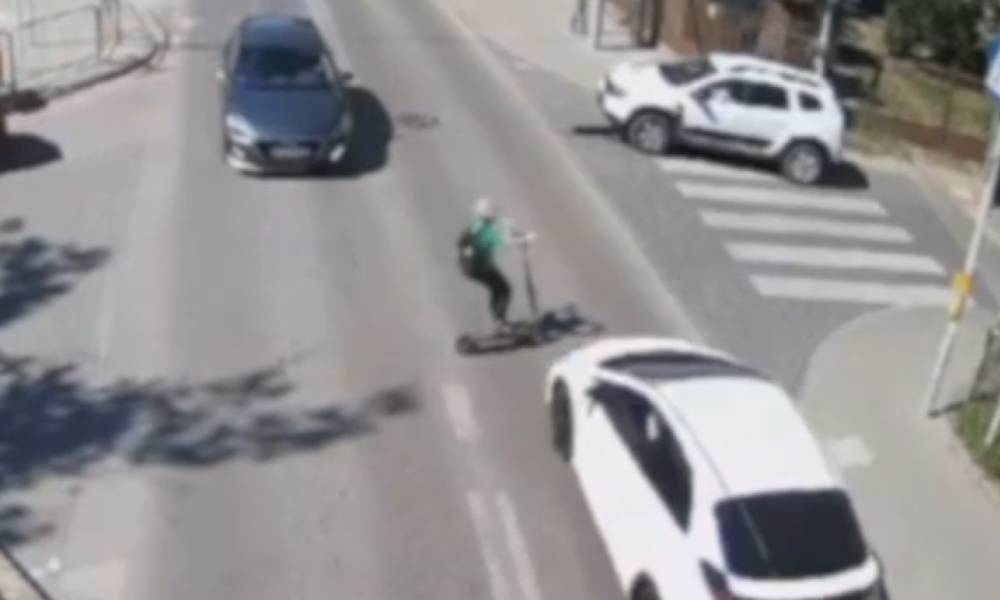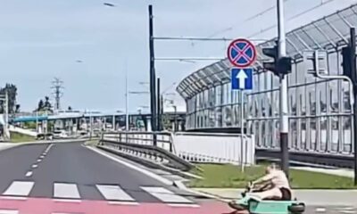 W Krakowie kierująca elektryczną hulajnogą niemal nie wjechała na przejazd dla rowerów na czerwonym świetle. Ratowała się wywrotką Film z Krakowa, który zarejestrowano 7 czerwca, przyprawia...