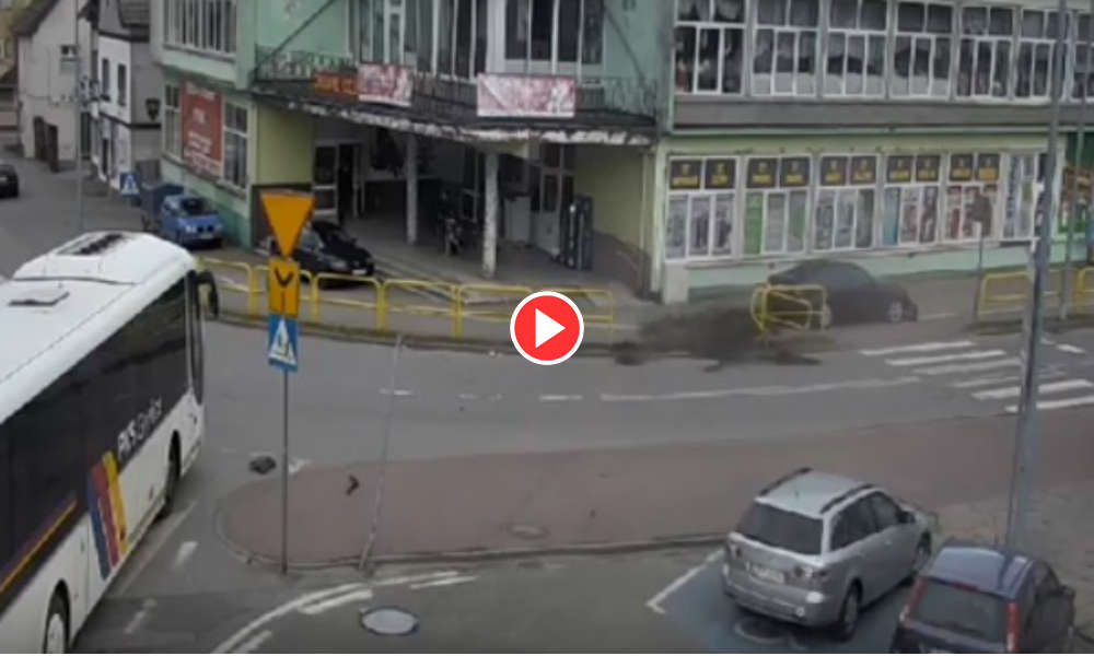 Blisko tragedii w Miastku. Kierowca pod wpływem alkoholu i narkotyków staranował barierki i wjechał na chodnik. Szedł tamtędy ojciec z dzieckiem w wózku Policja ujawniła film...