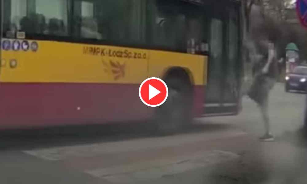 Kierowca MPK Łódź przejechał przez przejście dla pieszych tak, że zmusił człowieka do ucieczki. Wściekły mężczyzna kopnął w drzwi autobusu Szokujące sceny na ulicy w Łodzi....