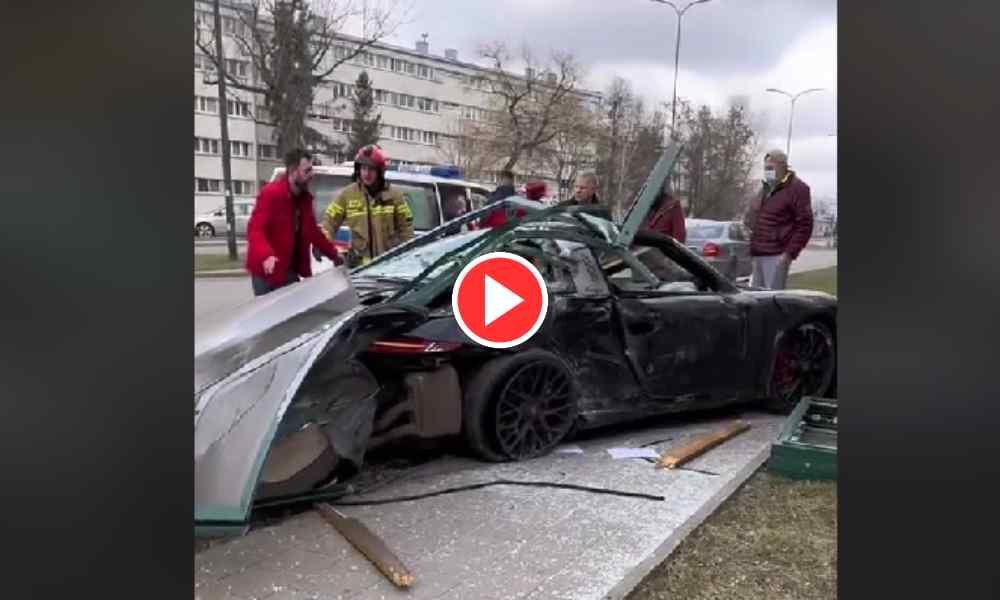 Wczoraj w Łodzi po kolizji dwóch samochodów porsche zmiotło znak na przejściu dla pieszych i staranowało wiatę przystankową. Na szczęście nie było tam ludzi. Wyciekło nagranie,...
