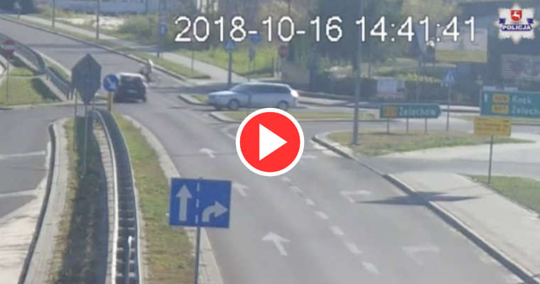 Policja ujawniła nagranie wypadku, do którego doszło w Łukowie (Lubelskie) i przypomina rowerzystom, że nie powinni jeździć po chodnikach i przejściach dla pieszych