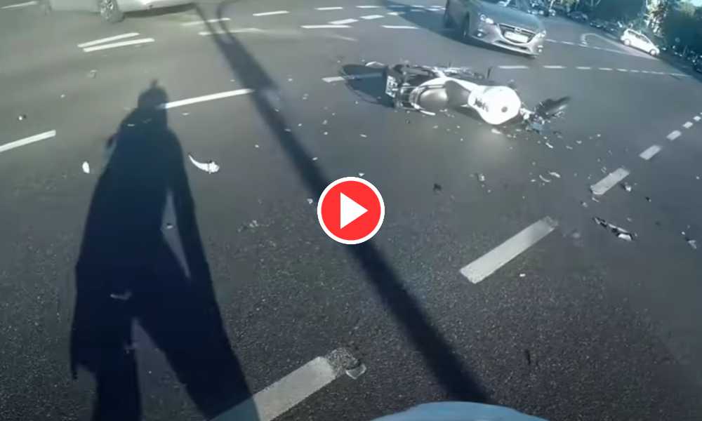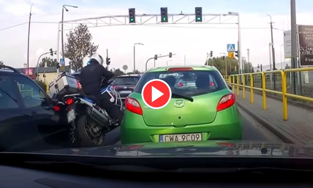 Prawo nie zabrania omijania motocyklem pojazdów stojących w korku. Trzeba jednak zachować ostrożność. Inaczej kończy się tak, jak na tym filmie W Polsce nie uregulowano wprost...