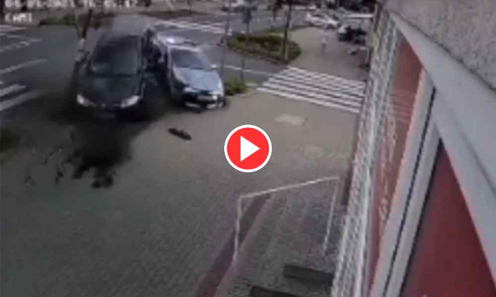 We Wrocławiu radiowóz policji jadący na sygnałach zderzył się z autem nauki jazdy. Oglądając nagranie zdarzenia należy zapytać, czy policjant nie pomylił samochodów? Bo chyba powinien...