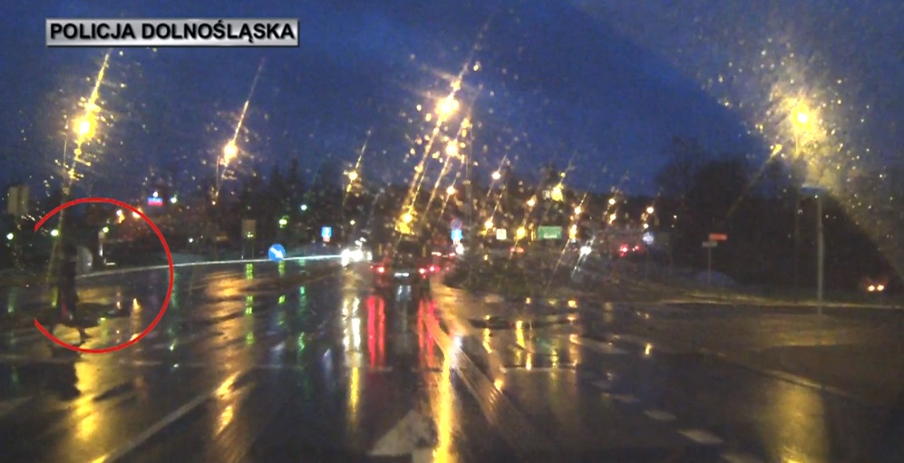 Ciemno, deszcz, a kierowca w Jeleniej Górze tuż przed przejściem ominął policyjny radiowóz i prawie rozjechał kobietę na pasach. Stracił prawo jazdy i odpowie przed sądem