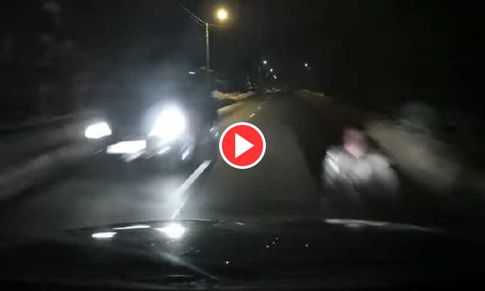 Pijany mężczyzna siedział wieczorem na jezdni. Wjechał w niego kierowca. Tłumaczy się, że nie miał szans go zauważyć, ale… na filmie widać, że ulicą prowadzącą wśród...