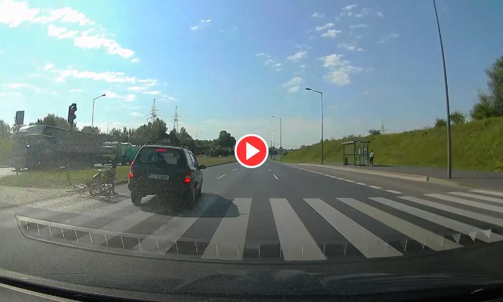 W sieci pojawiło się nagranie niebezpiecznej sytuacji w Poznaniu, którą stworzył rowerzysta wjeżdżający na przejście przy czerwonym świetle. Zaskoczony przez niego kierowca zdołał uratować mu życie...