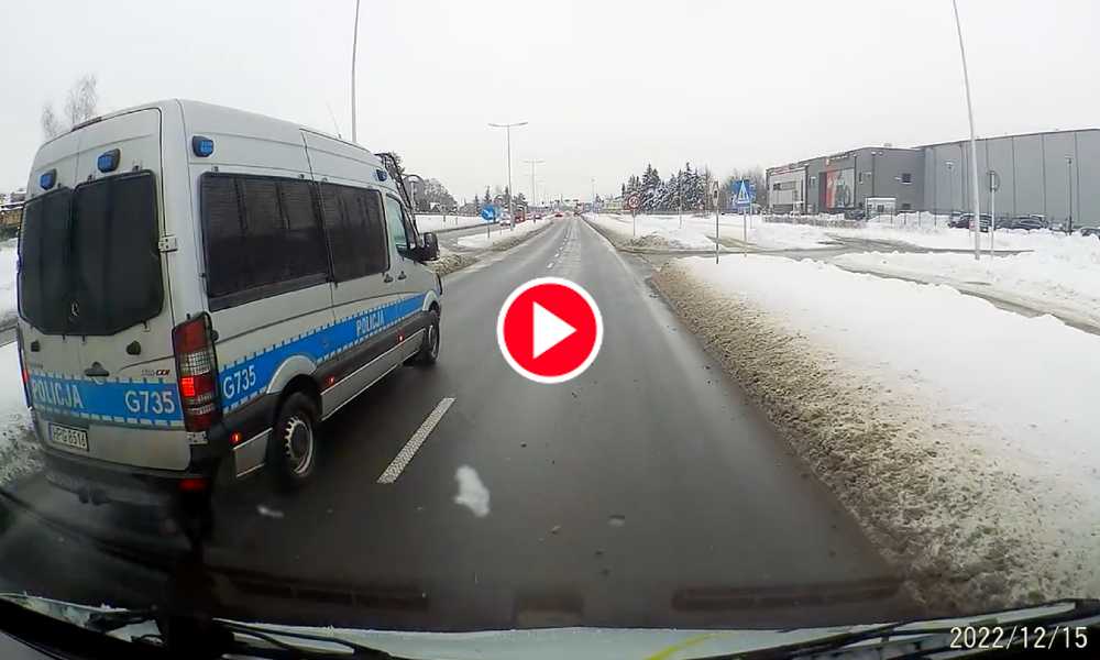 Kierowca radiowozu policji w Rzeszowie wyprzedzał inny samochód na przejeździe kolejowym i na ograniczeniu do 30 km/h 15 grudnia, środek dnia. Rzeszów, ul. Rzecha. Kierowca dojeżdża...