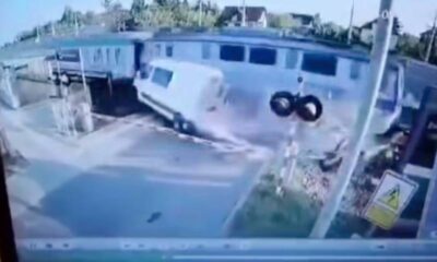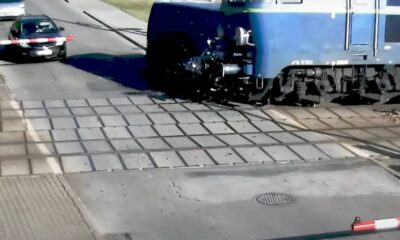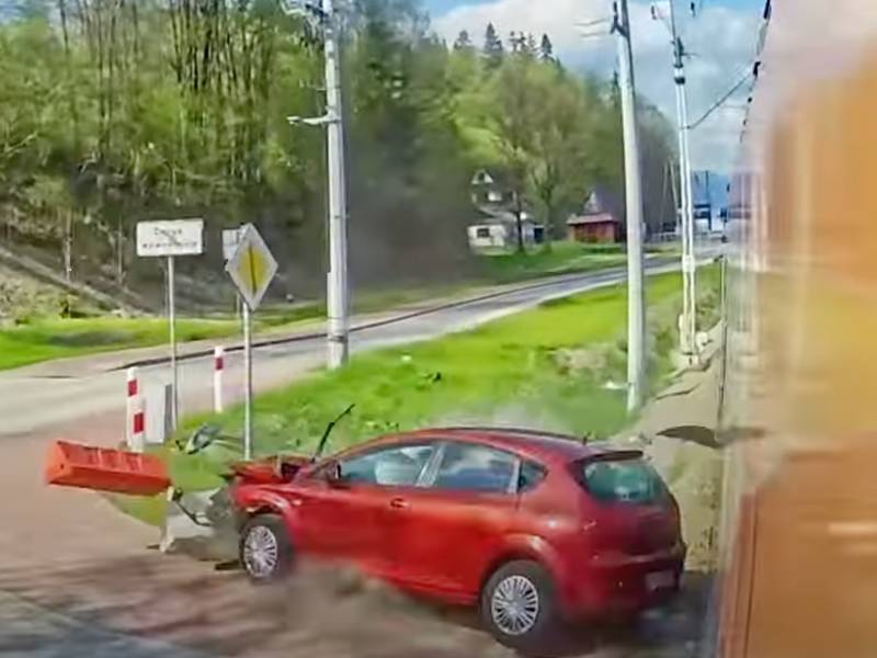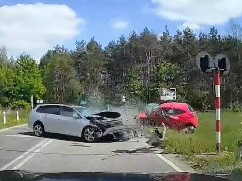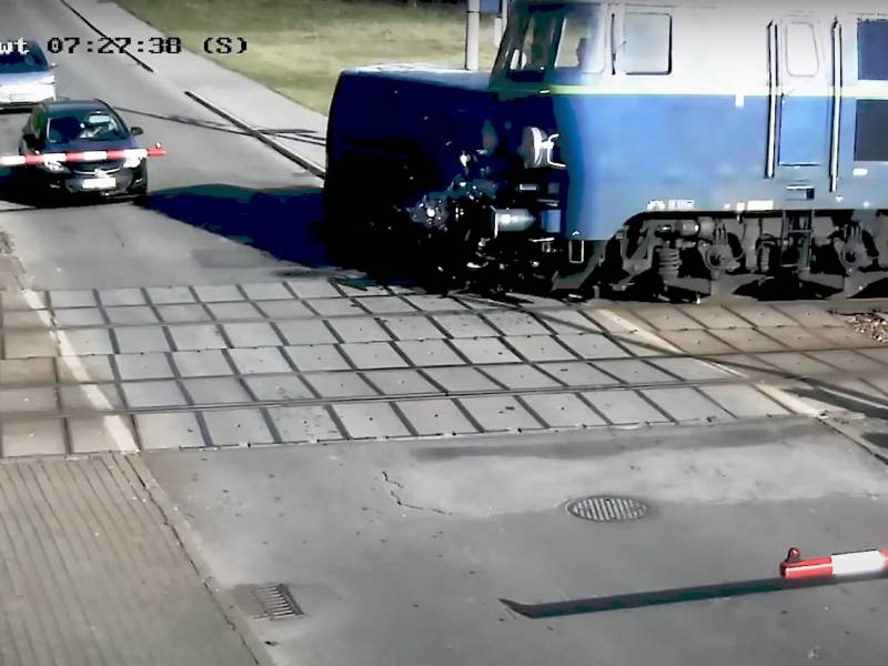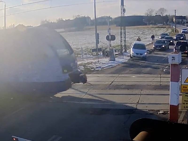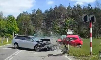 Na przejeździe kolejowym zderzyły się trzy samochody. Z nagrania wynika, że wszyscy trzej jechali jak szaleńcy – żaden z nich nie stanął przed znakiem STOP przed...