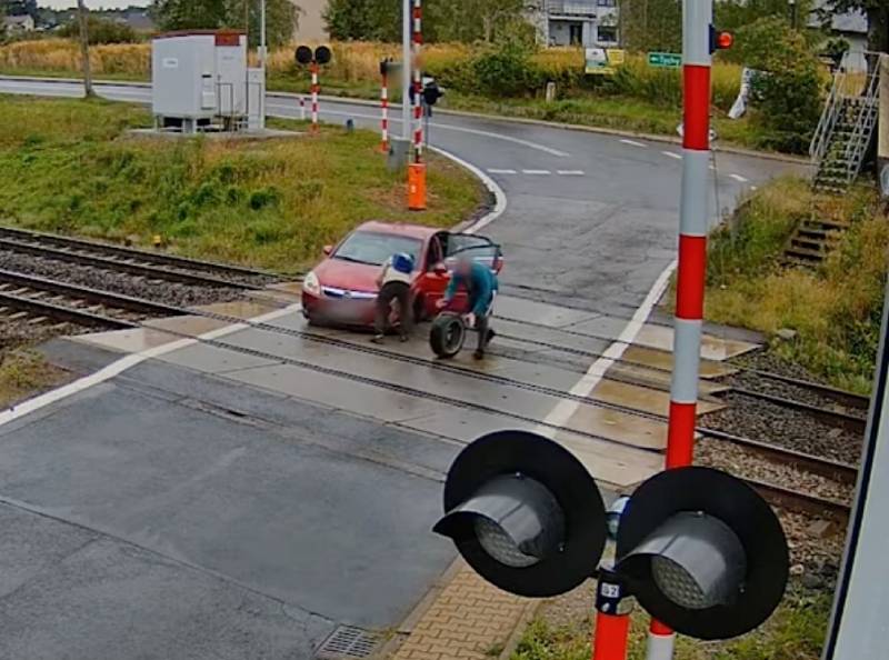 Kierowca bez prawa jazdy i pod wpływem narkotyków uciekał przed czeską policją w Ołomuńcu. Ucieczka skończyła się zderzeniem z pociągiem na przejeździe Czeska Policja pokazała nagranie...