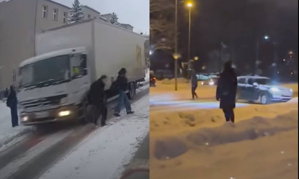 Zima brutalnie weryfikuje umiejętność przewidywania i dostosowania prędkości do warunków. Na nagraniach z Polski widać kierowców, którzy nie dali rady wyhamować przed pieszymi – niewiele brakowało...