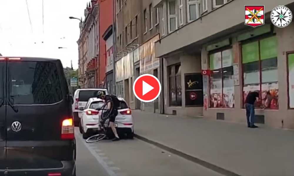 Nonszalancja niektórych rowerzystów na drogach jest powalająca. Film czeskiej policji pokazał, jak jeden z nich sam zgotował sobie bolesną lekcję Tym razem nie polska policja, a...
