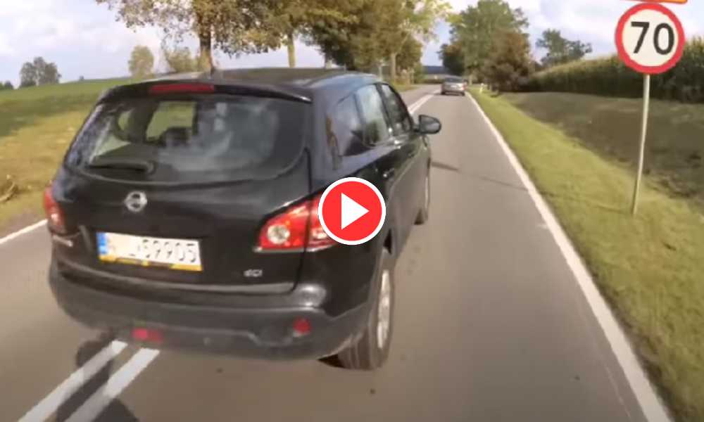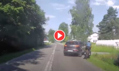 Kierowcy nie chcieli poczekać i wyprzedzali rowerzystę na wąskiej drodze. Jeden z nich spowodował kolizję. Taki manewr to za jednym zamachem zgromadzenie 20 punktów karnych Rowerzysta...