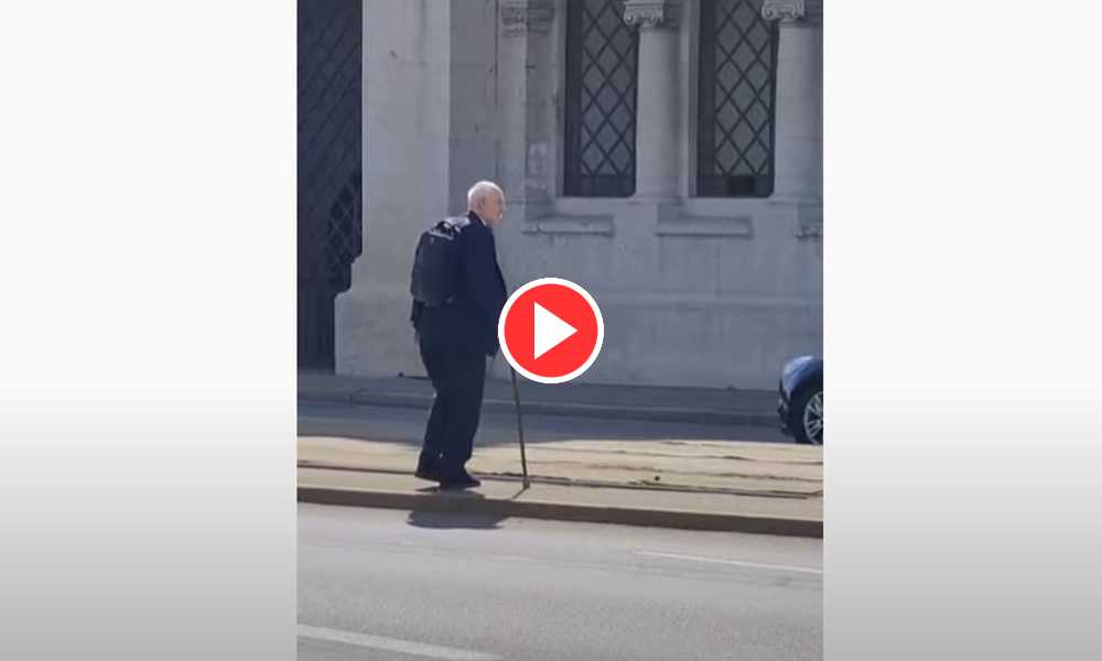 Janusz Korwin-Mikke został nagrany, jak przechodzi przez ulicę poza przejściem dla pieszych Sieć obiegł film z Januszem Korwinem-Mikke przechodzącym o lasce przez wielopasmową drogę i torowisko...