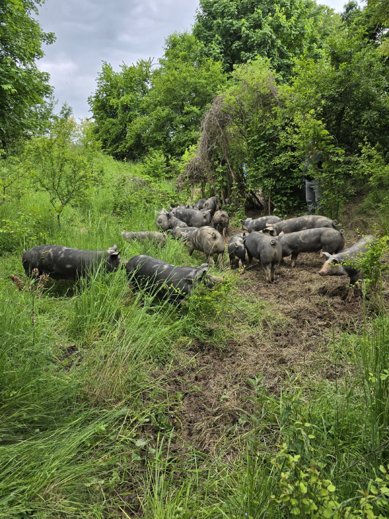 Stawiamy na krótki łańcuch: od pastwiska do naszej masarni i pracowni wędliniarskiej jest blisko. Minimalizujemy stres i drogę surowca, a w pracowni działamy metodami rzemieślniczymi: rozbiór, wędzenie i parzenie prowadzimy według opisanych procedur. Unikamy zbędnych dodatków – liczą się prostota receptur, sól, przyprawy i praca dymu. Tak powstają wędzonki, kiełbasy, pasztety oraz wyroby pieczone o czytelnym składzie. Oczywiście wszystko pod nadzorem służb weterynaryjnych.